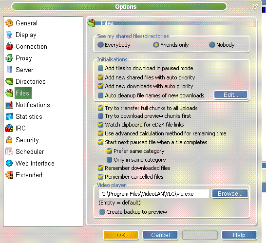 Share my shared files: friend: cho những client bạn đã add vào frient list, every body: tất cả. Nobody: ko ai cả. Để default.